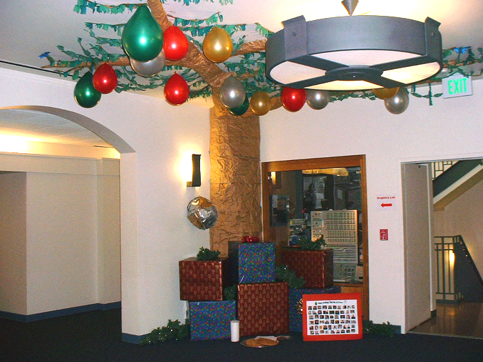 The artistic theme of the third floor decorations was "Christmas in giant world". You - a man among giants, a mouse among men, a flea among mice, etc. - have entered the living room of the giants (who are, apparently, Christian).