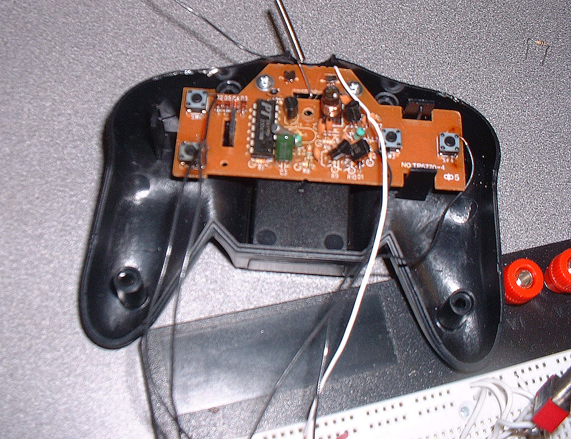 Source code is included below... it actually just uses DirectInput to talk to the pad, so if you're burning to drive an RC car around with your PC joystick or keyboard, that works too. If you're using this approach, the software also tries to pulse the pins on the parallel port to give you some crude analog speed control.