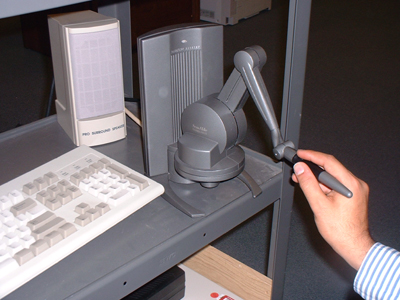 Once an image has been rendered, the user can use the Phantom to explore the entire surface. See Sensable's website for a more detailed description of the Phantom's capabilities; in short, the sensation of using a Phantom is similar to running one's finger over an object. The force-feedback is extremely convincing, although it is currently limited to a single point of contact.